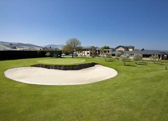 El campo de golf de Castropol es prácticamente llano, lo que lo convierte en un recorrido cómodo y agradable para caminar mientras juegas. Sus amplias calles están cuidadosamente diseñadas, destacando por la presencia de numerosos obstáculos naturales de agua y una rica variedad de árboles, como pinos, álamos y olivos, que embellecen el paisaje.